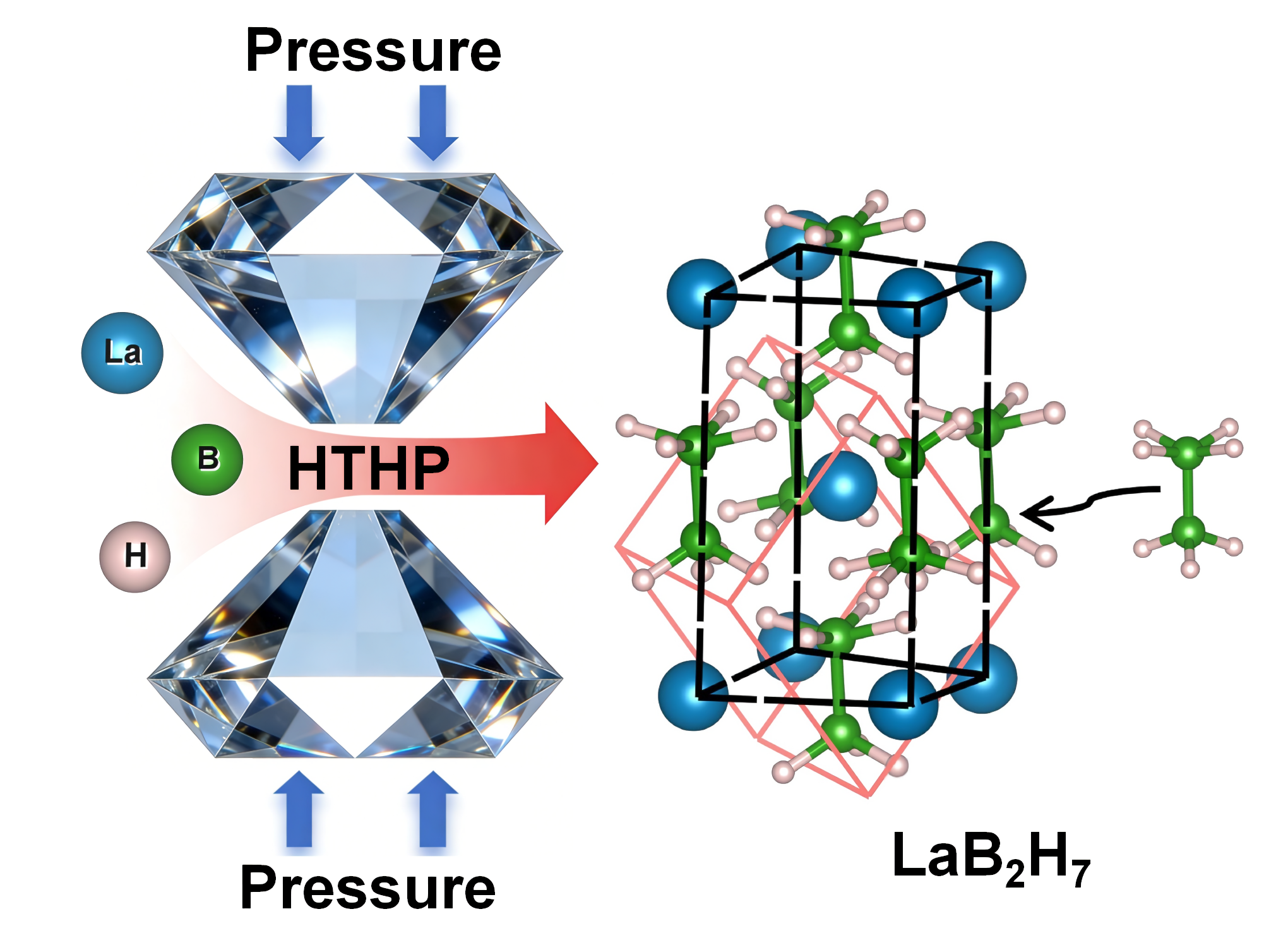 图1 高压高温条件下合成P21/m-LaB2H7示意图