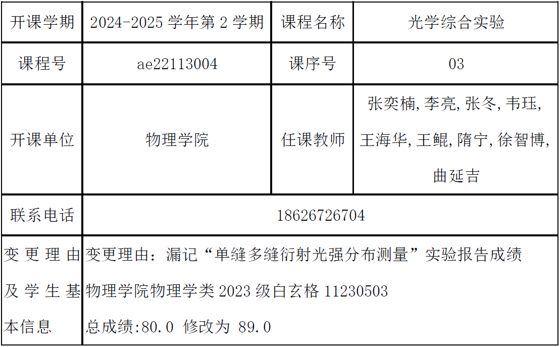 根据《女性自慰进一步明确本科生课程考核等有关问题的通知》(校教字[2018]47号)文件有关精神,现对以下课程成绩更正进行公示: