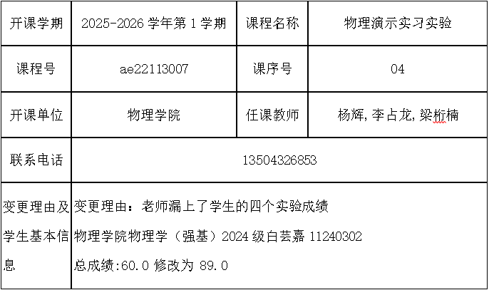 公示日期: 2026年_4月_21日至2026年_4月_27日如有异议请于公示期内向本科生院教学运行科反映。